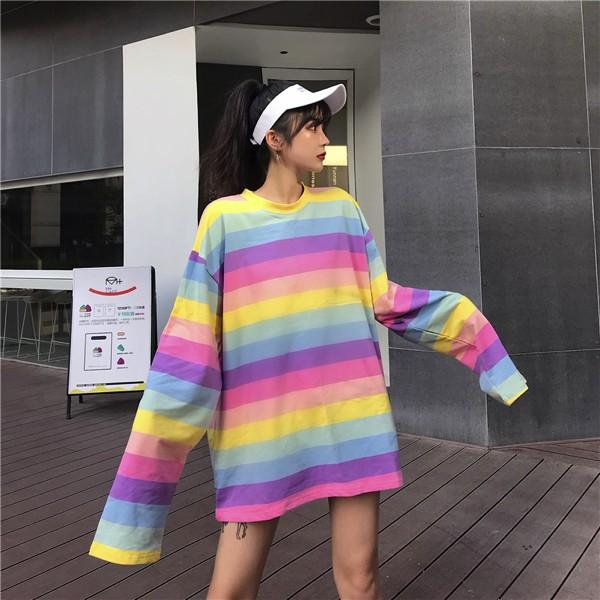 長袖カットソー ロンt レインボー オーバーシルエット レディース ファッション Y3a276 韓国系ダンスウェアdecorative 通販 Yahoo ショッピング
