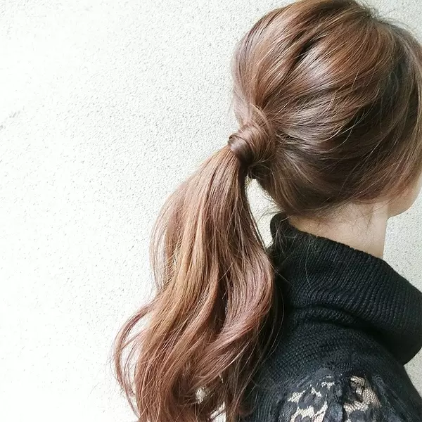 低めポニーテールはゴムを隠す その一手間でこなれて見える